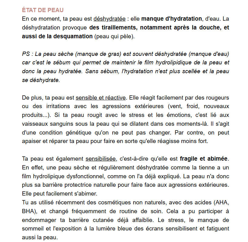 Aucun problème, les questions du questionnaire sont claires et je t'explique tout dans mon mail avec ton diagnostic et ta routine personnalisée.