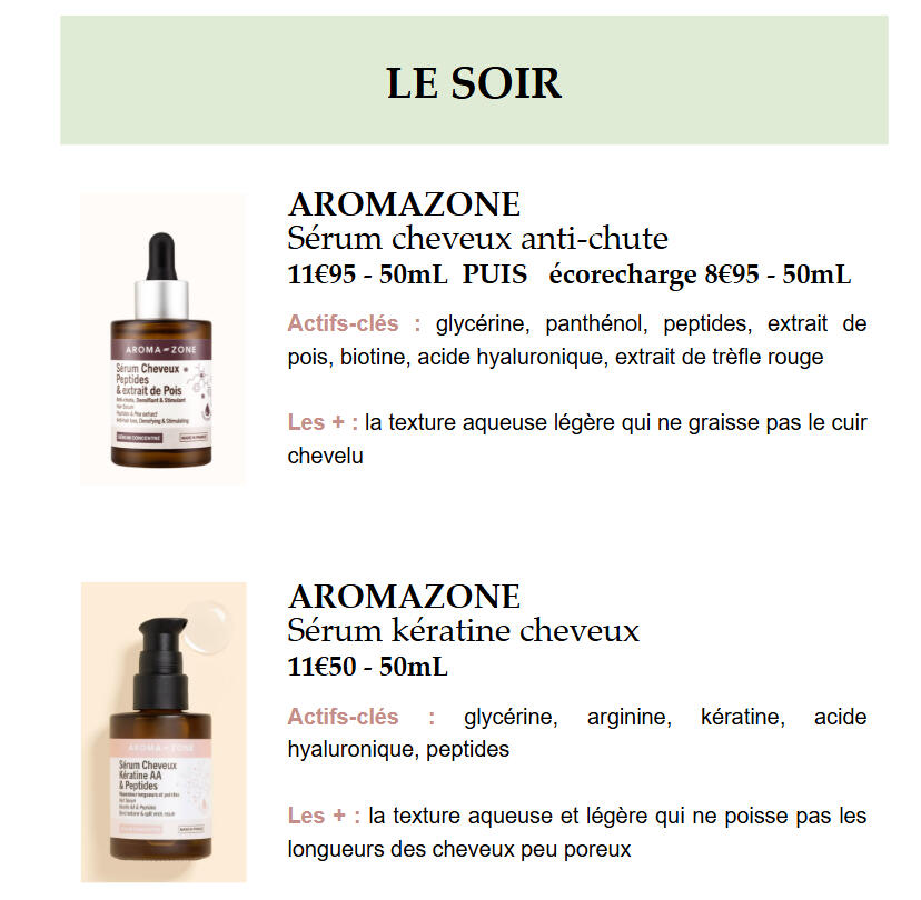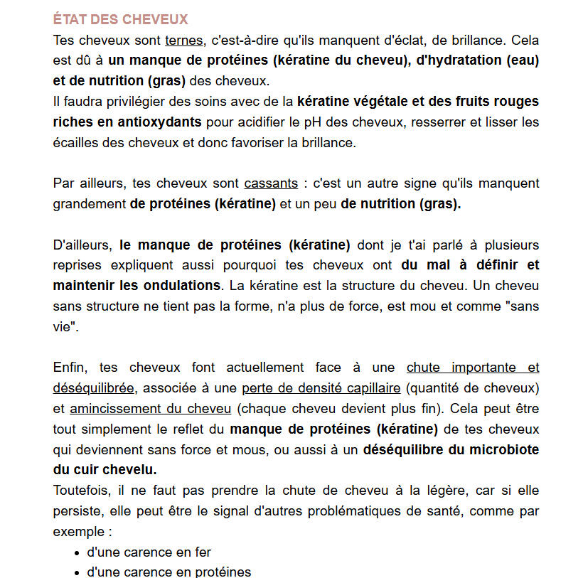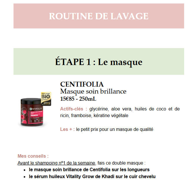 Voici un extrait d'un mail de routine personnalisée CHEVEUX